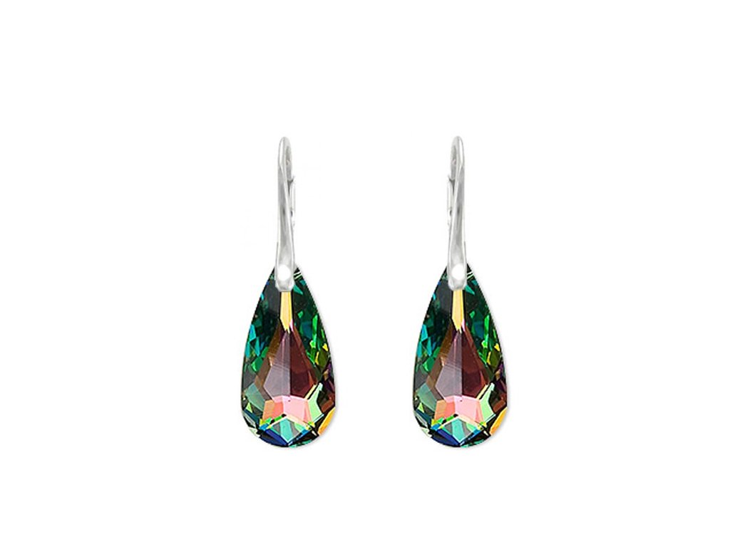 Dámske náušnice vyhotovené v kombinácií s farebnými krištáľmi SWAROVSKI CRYSTALS. Šperk si zachováva svoju farbu, lesk, je odolný proti sčernaniu a má dlhú životnosť. Jednoduchý ale zároveň veľmi obľúbený model pre všetky vekové kategórie .
