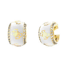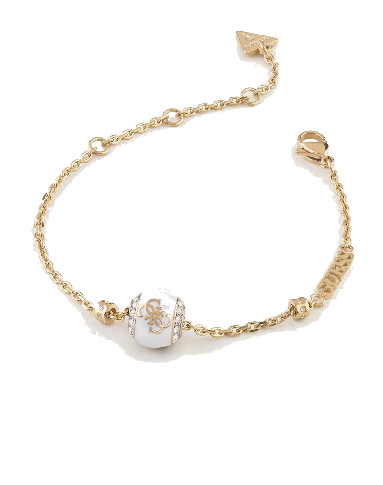 Módny dámsky náramok a náušnice značky Guess vyrobené z ušľachtilej chirurgickej ocele v zlatej farbe. Na náramku je guľatá ozdoba v tvare kruhu bielej farby a zlatým gravírovaním. Náramok má nastaviteľnú dĺžku 17-21 cm. Náušnice z chirurgickej ocele sú na puzetkové zapínanie v rovnakom tvare ako ozdoba na náramku. Aj Vaše zápästie a tvár môže zdobiť tento nadčasový šperk.