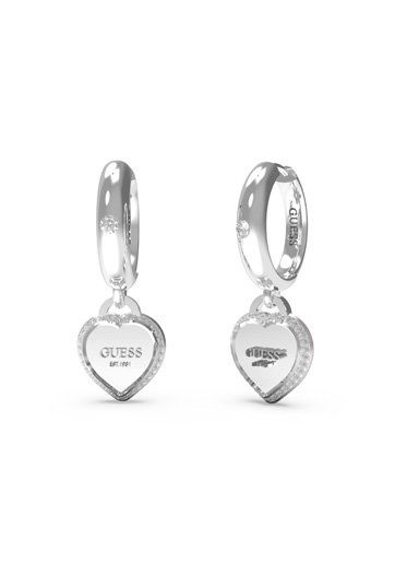Módny dámsky náramok značky Guess vyrobený z ušľachtilej chirurgickej ocele. Na náramku je visiaca ozdoba v tvare srdca ozdobená zirkónmi a nápisom značky Guess. Náramok má nastaviteľnú dĺžku 17-21 cm. Náušnice z chirurgickej ocele sú na kĺbové zapínanie s visiacou ozdobou v rovnakom tvare ako na náramku.
