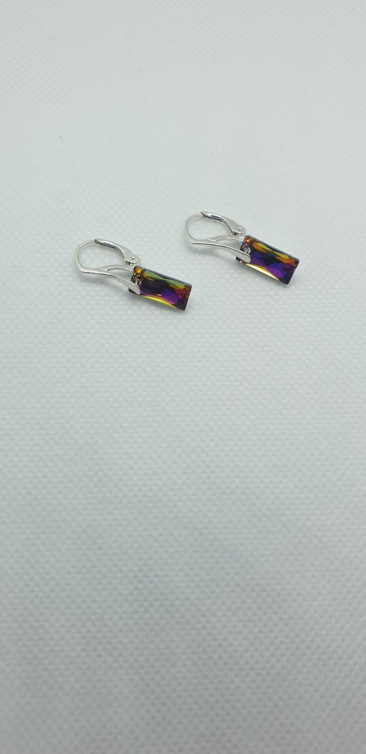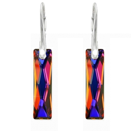 Kvalitné šperky z kryštálov Swarovski. Extra nežné strieborné náušnice so Swarovski elements tvar Queen Baguette vo vľekosti 13mm a farbe Volcano Vás nenechá chladnými.