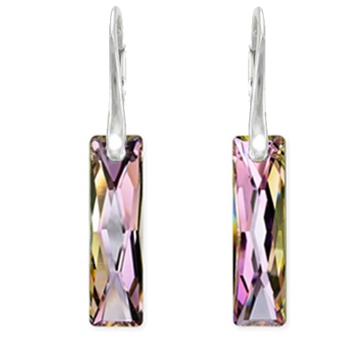 Elegantné náušnice Swarovski elements Queen Baguette fialové Vitrail Light 25mm