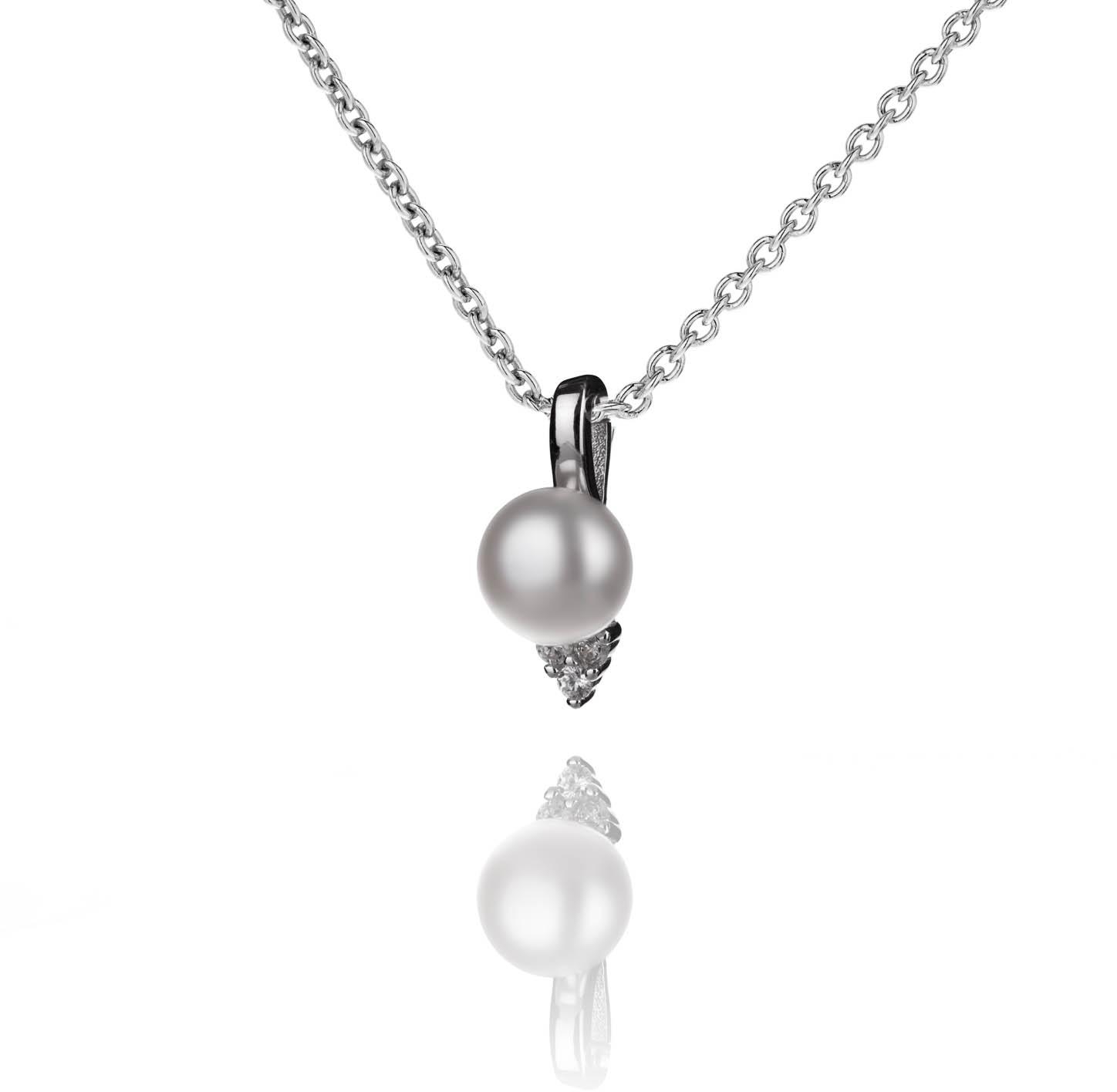 Jednoduchý strieborný prívesok s perlou a zirkonmi SP83P , AG 925/1000