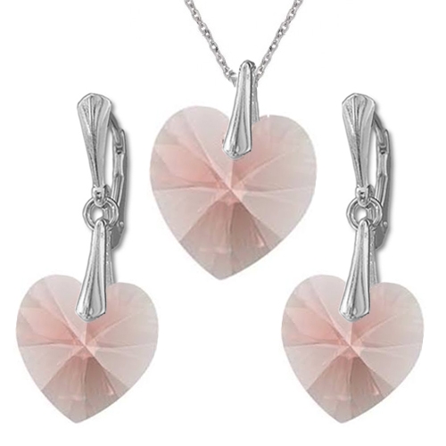 Nádherný set Swarovski elements srdce ružový BLUSH ROSE 14mm