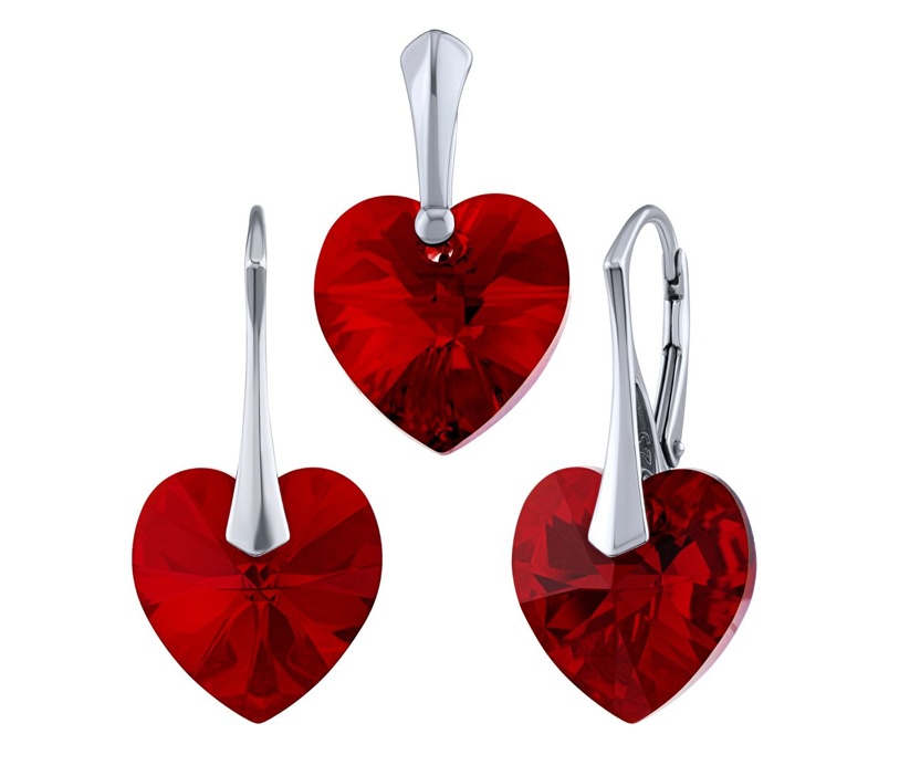 Nádherný set Swarovski elements srdce sýtočervený SIAM 14mm