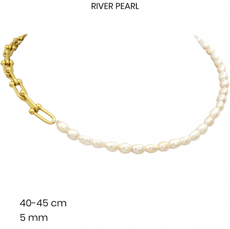 Typ : Dámske | Materiál : Oceľ + prírodná perla | Farba oceľe : Zlatá | Kamienok : Bez kamienka | Povrchová úprava : Lesklé |