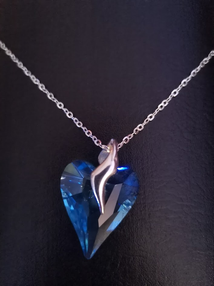 Náhrdelník Swarovski el. srdce Wild modré – Aquamarine 27mm