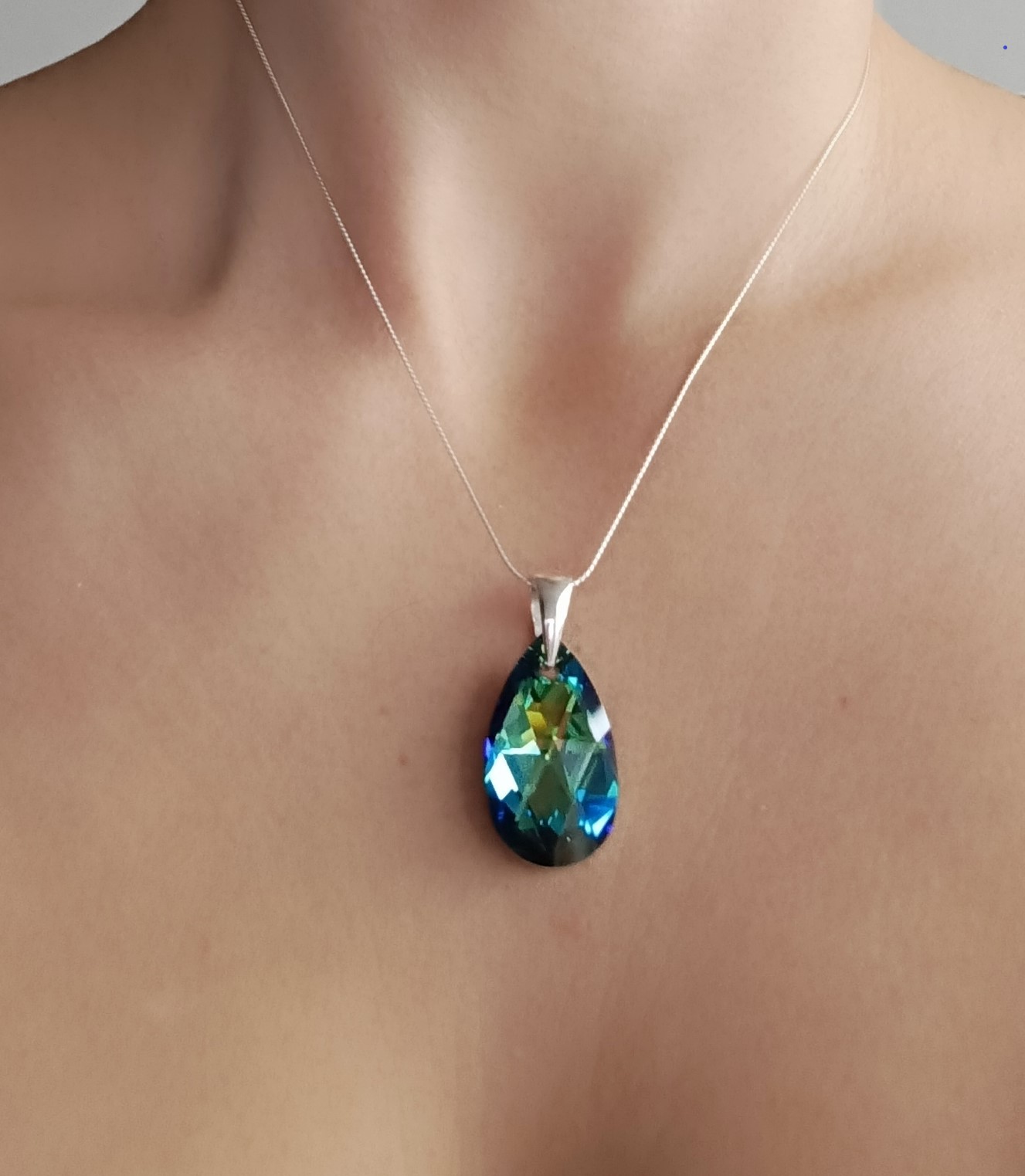 Náhrdelník Swarovski elements hruška modrá – Bermuda Blue 28mm