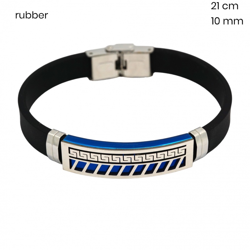 Typ : Pánske | Materiál : Oceľ + guma | Farba oceľe : Bicolor – ocelová + modrá | Farba materiálu : Čierna | Kamienok : Bez kamienka | Povrchová úprava : Lesklé |