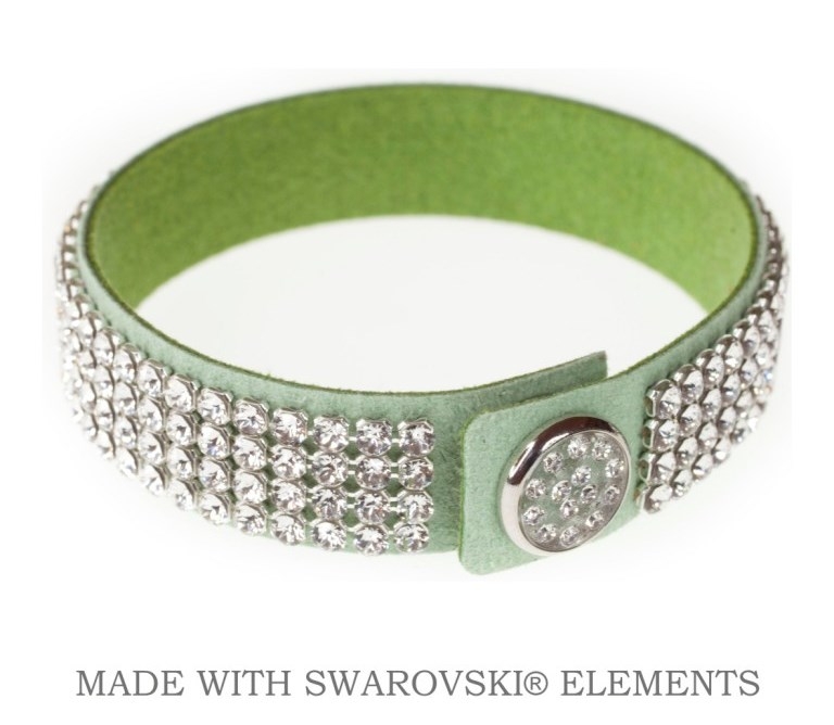 Náramok Levien kožený swarovski zelený s čírymi kryštáľmi