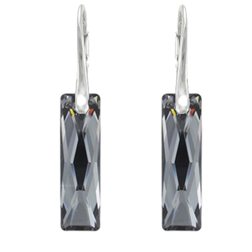 Náušnice elegantné swarovski elements Queen Baguette čierne Silvernight 25mm