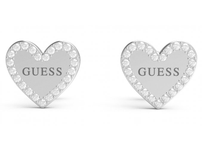 Módne dámske náušnice značky Guess vyrobené z ušľachtilej chirurgickej ocele. Náušnice sú napichovacie v tvare srdiečka striebornej farby s vygravírovaným nápisom a zdobené kryštálikmi. Aj Vašu tvár môžu zdobiť tieto nadčasové náušnice.