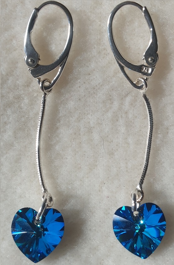 Kvalitné šperky z kryštálov Swarovski. Krásne visiace strieborné náušničky Swarovski elements srdiečko vo farebnom prevedení Bermuda blue. Srdce má veľkosť 10mm, žiari krásnou modrou farbou a celá náušnica má dĺžku 5cm.
