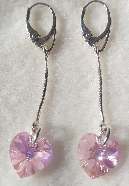 Kvalitné šperky z kryštálov Swarovski. Krásne visiace strieborné náušničky Swarovski elements srdiečko vo farebnom prevedení Light Rose. Srdce má veľkosť 10mm, žiari vkrásnou ružovou farbou y celá náušnica má dĺžku 5cm.