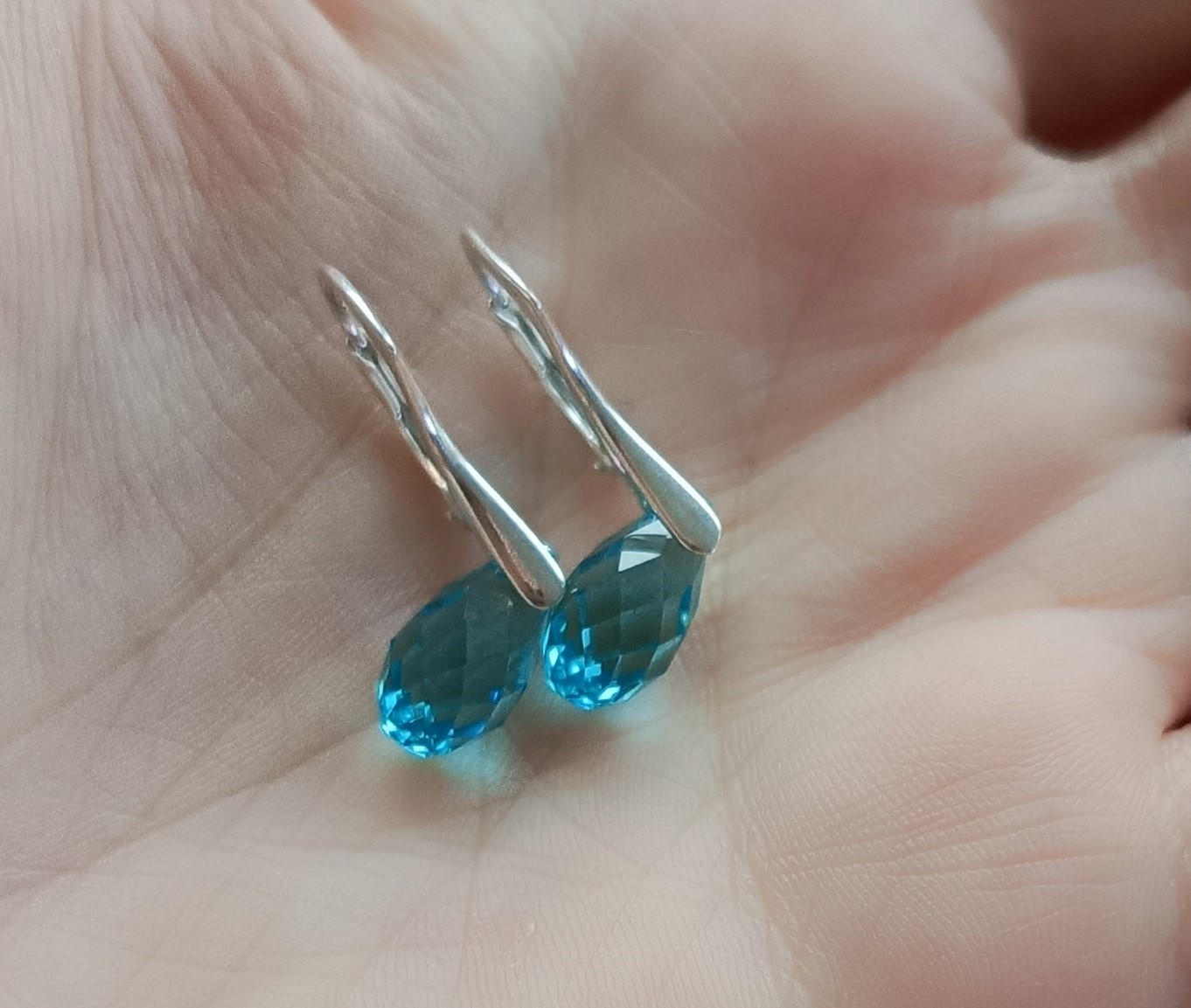 Náušnice Swarovski elements Briolette 13×6,5 modré Light Turquoise