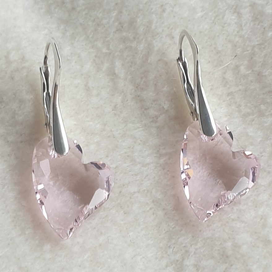 Náušnice Swarovski elements Devoted srdce ružové Rosaline 17mm