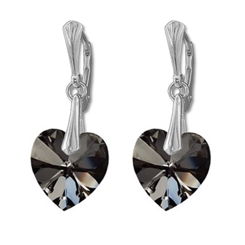 Náušnice Swarovski elements srdce 14,4×14 mm čierne SILVERNIGHT