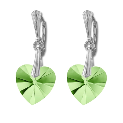 Náušnice Swarovski elements srdce 14,4×14 mm zelené PERIDOT AB
