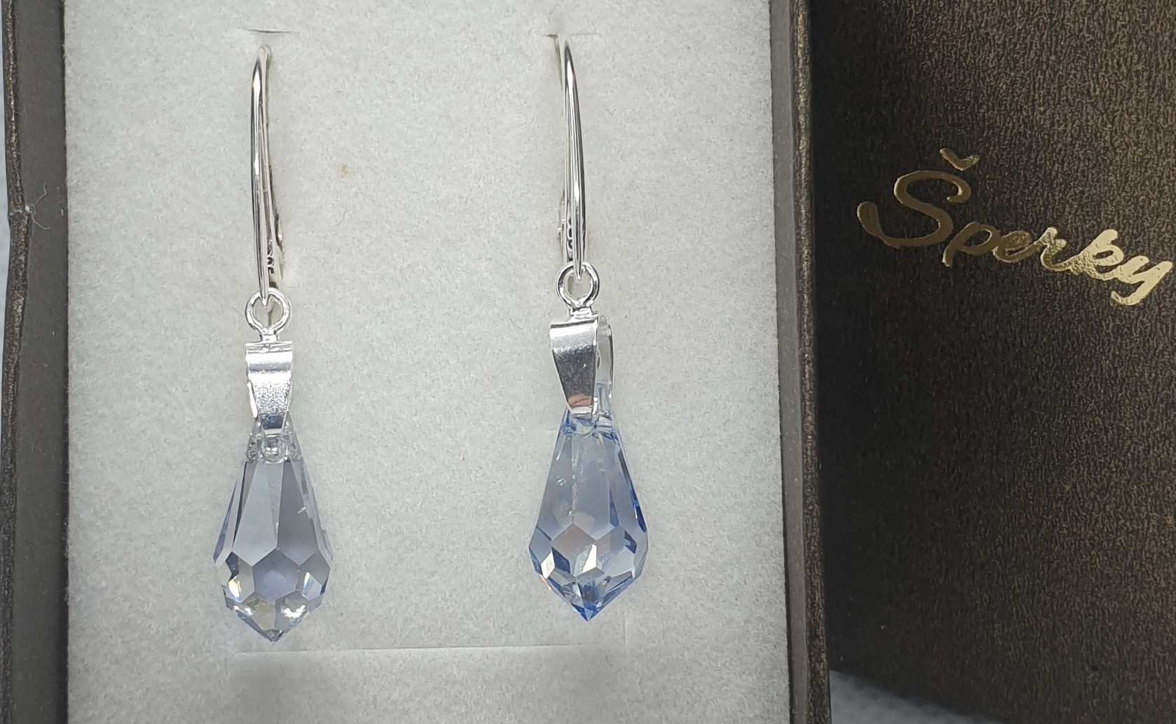Strieborné náušnice so Swarovski elements tvar Teardrop vo veľkosti 15*7,5mm a vo farbe Blue Shade sú nežné a ligotavé a vhodné na každodenné nosenie, ale nemusíte sa za ne hanbiť ani na spoločenskom podujatí.