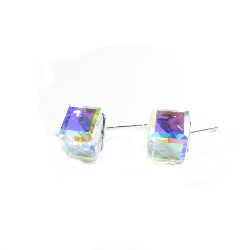 Náušnice swarovski kocky 6 mm vo farbe CRYSTAL AB F – napichovačky