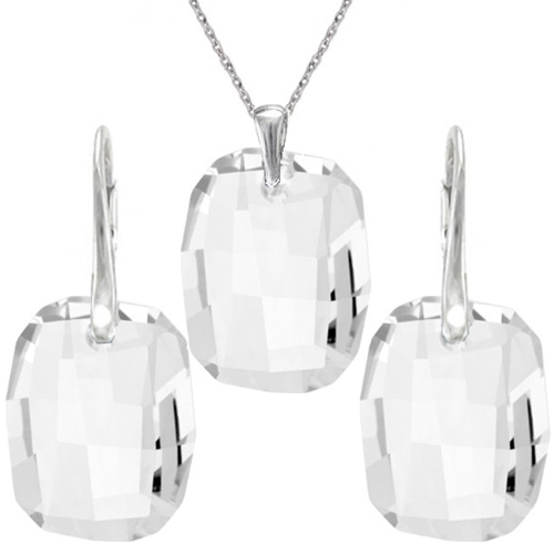 Kvalitné šperky z kryštálov Swarovski. Krásny a elegantný set náušníc s príveskom zo swarovski kryštáľov tvaru Grpahic vo farbe Crystal. Urobí z Vás dokonalú dámu.