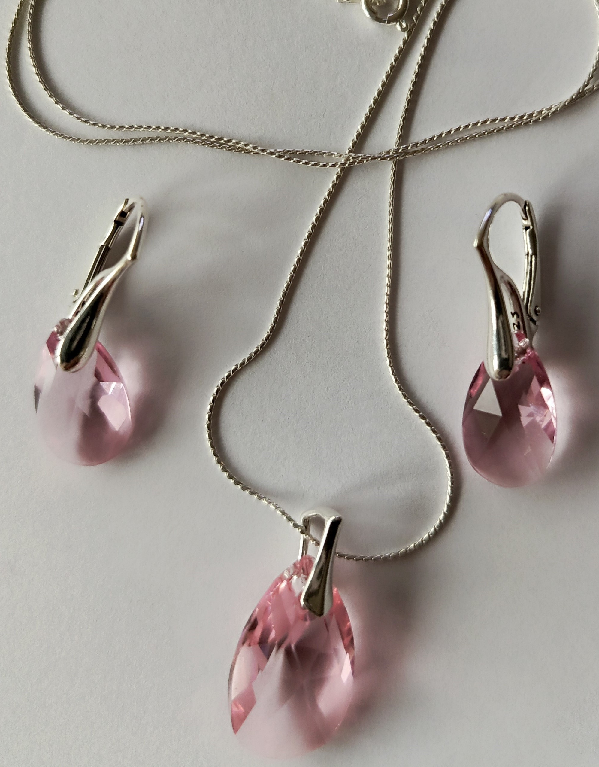 Set Swarovski elements hruška ružový LIGHT ROSE 16mm