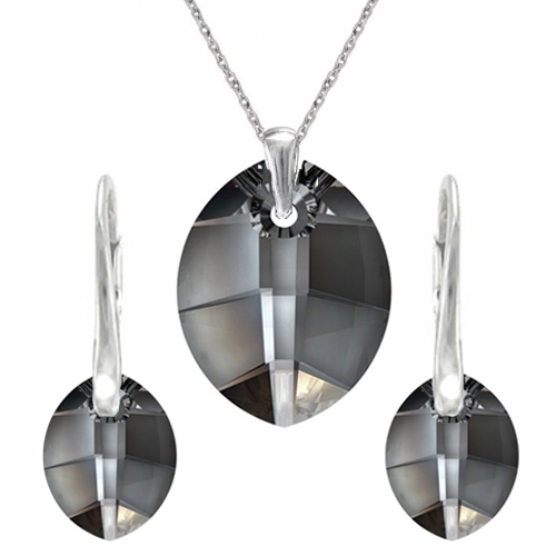Set Swarovski elements listy čierny SILVER NIGHT 16mm