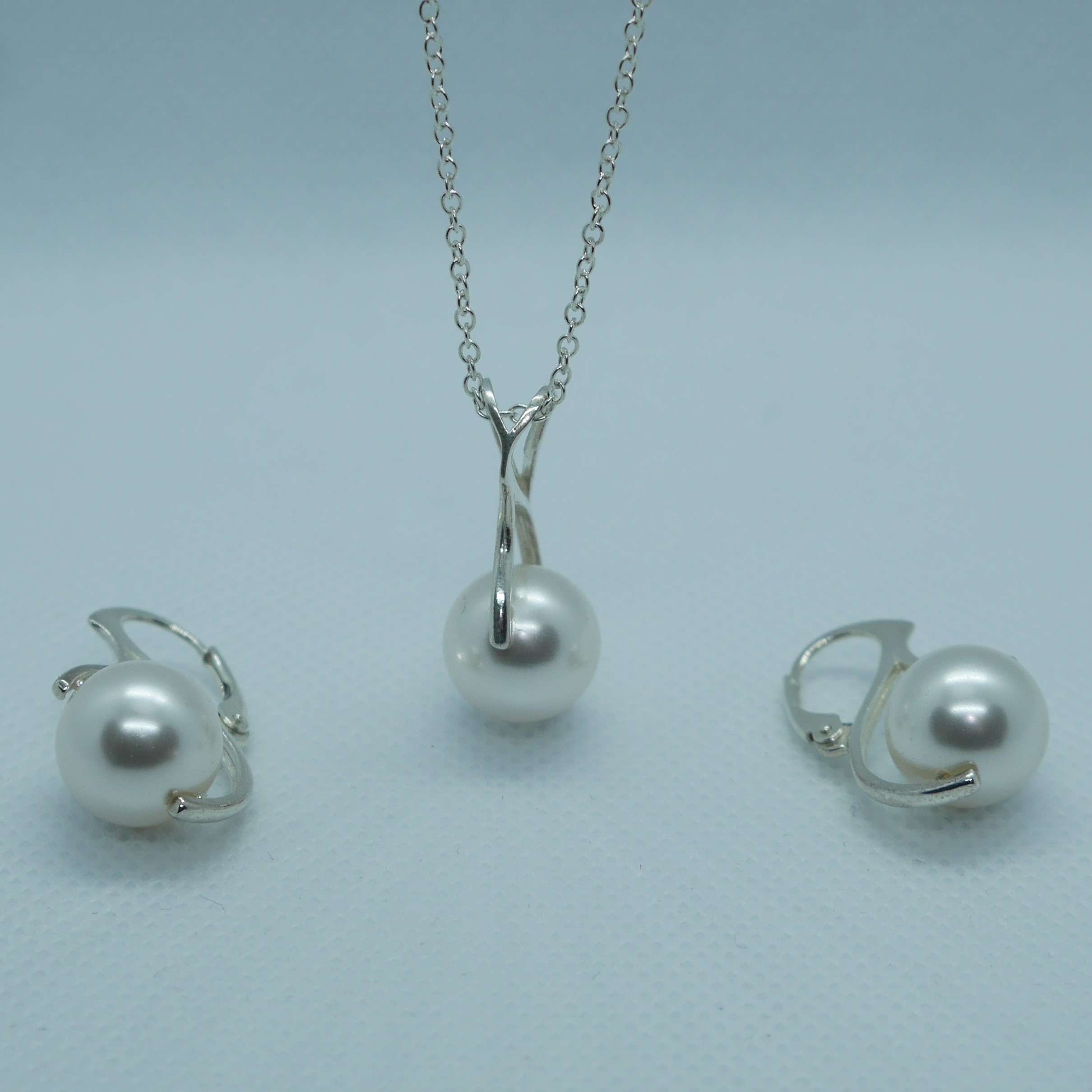 Kvalitné šperky z kryštálov Swarovski. Jemná a elegantná súprava perál na striebornom zapínaní spolu s jemnou striebornou retiazkou o dĺžke 45cm. Perly sú vo veľkosti 10mm bielej farby.