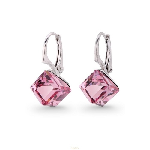 Strieborné náušnice kocky Swarovski elements 8 mm ružové LIGHT ROSE