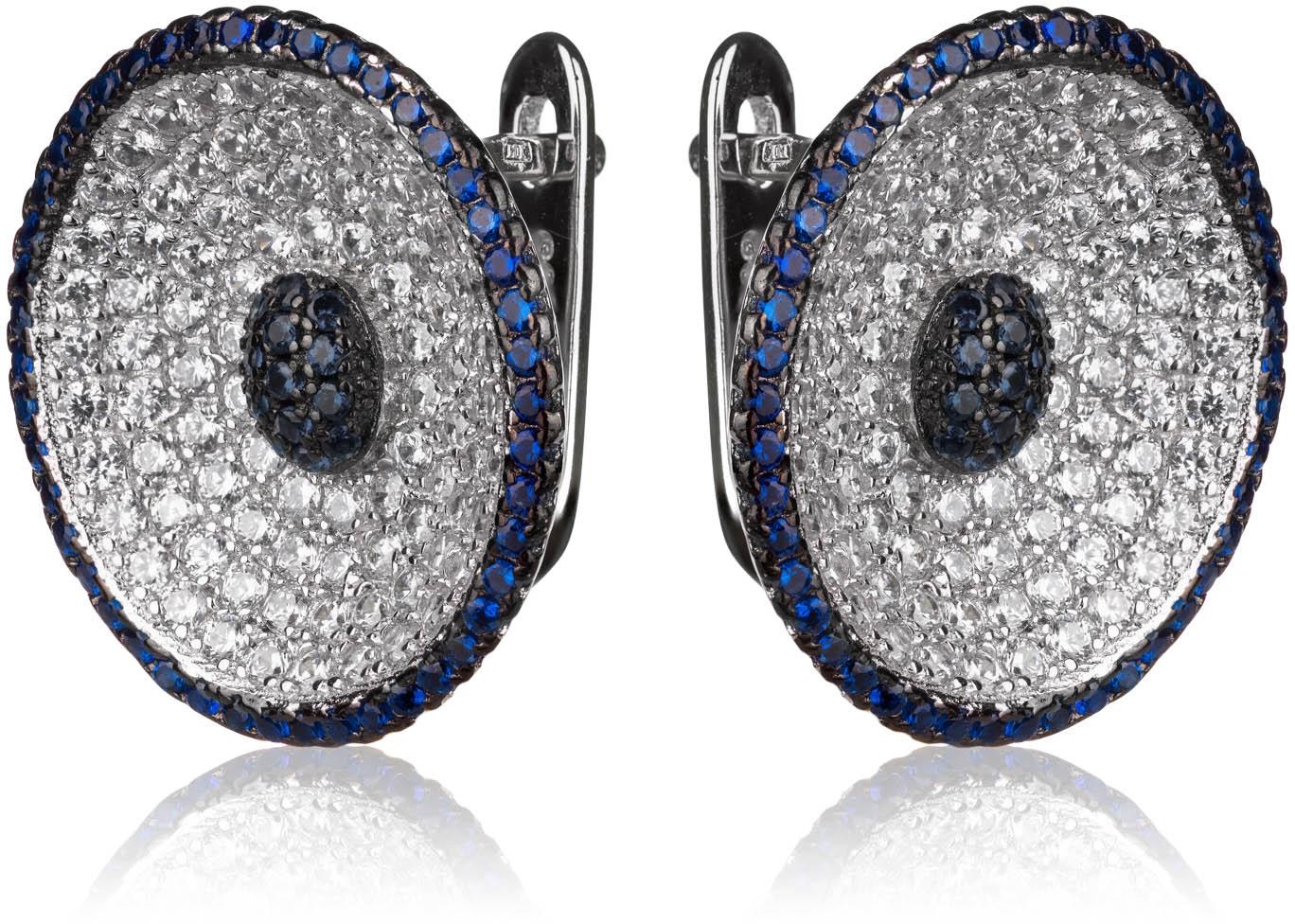 Strieborné náušnice zdobené zafírom a zirkónmi SS294E, AG 925/1000