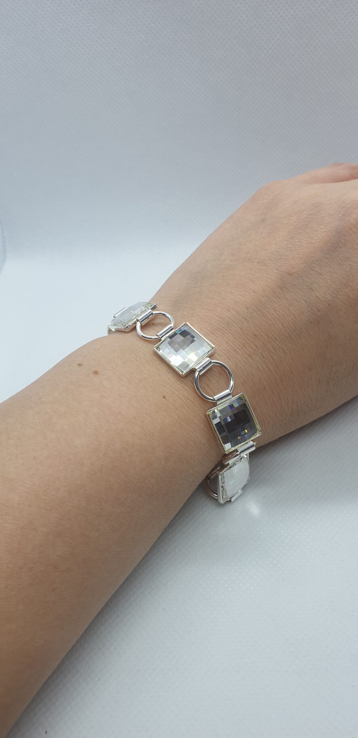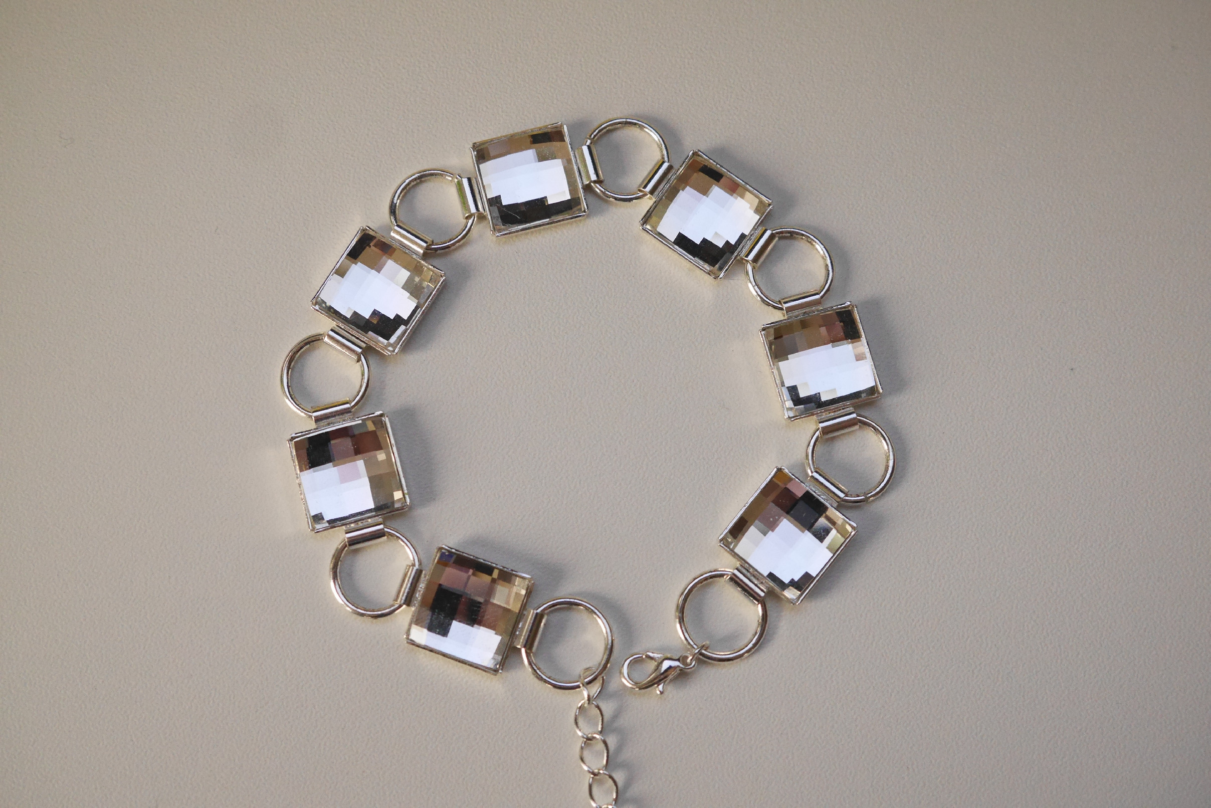 Krásny bižutérny náramok s veľkými kryštálmi Swarovski Chessboard vo farbe Crystal.