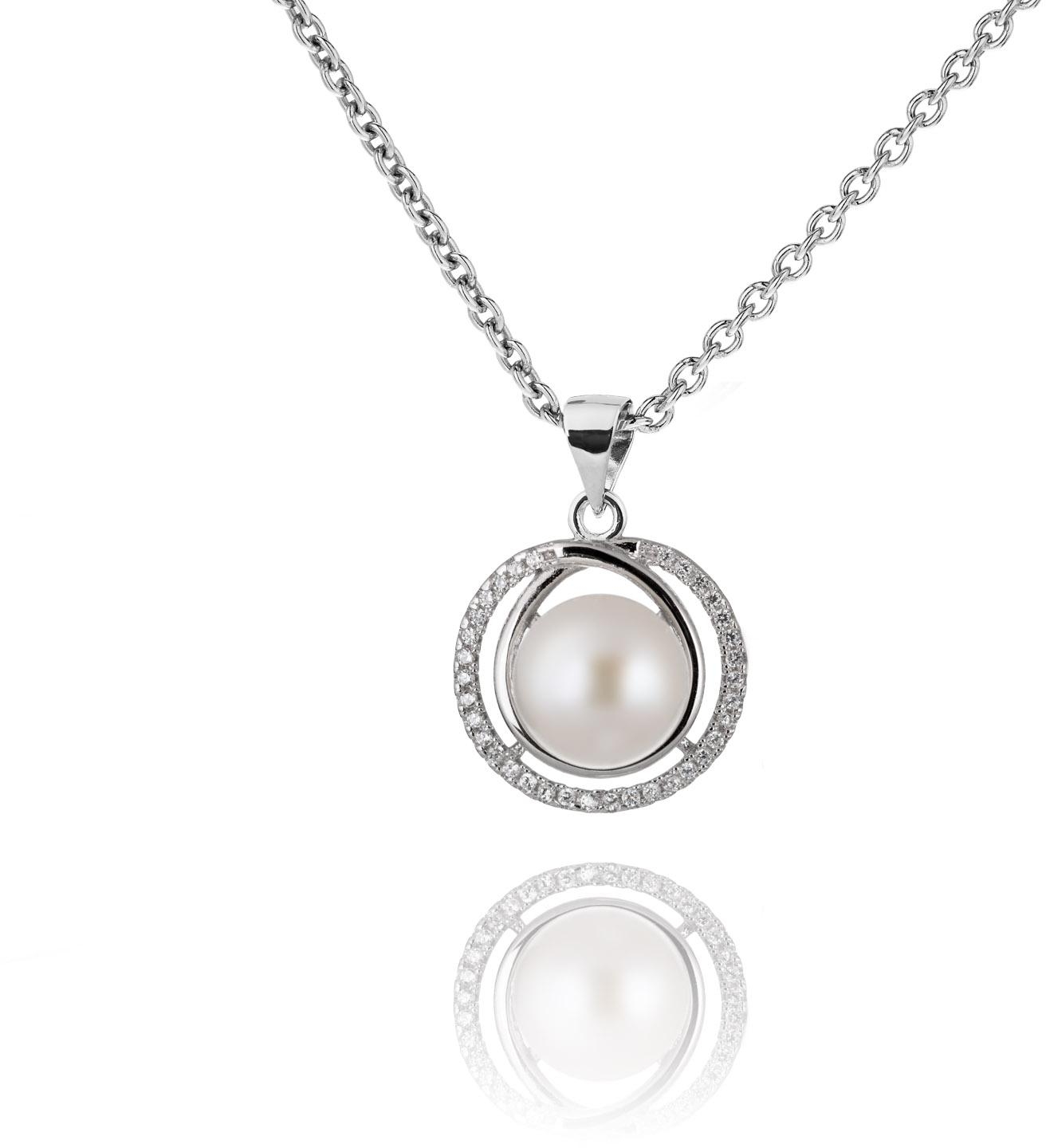 Strieborný prívesok s perlou a zirkonmi okolo SP65P , AG 925/1000