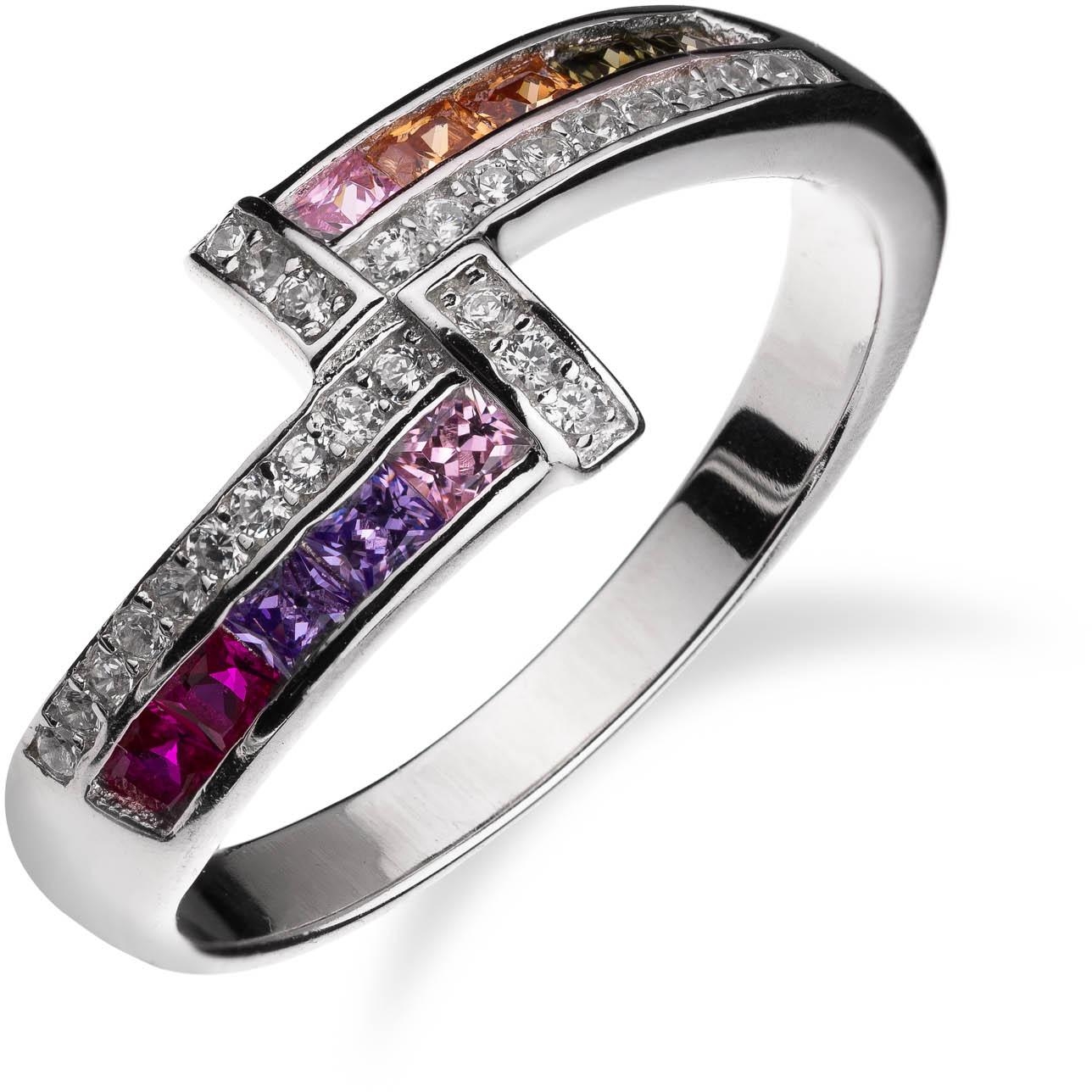 Strieborný prsteň s farebnými zirkónmi SR136, AG 925/1000: 52