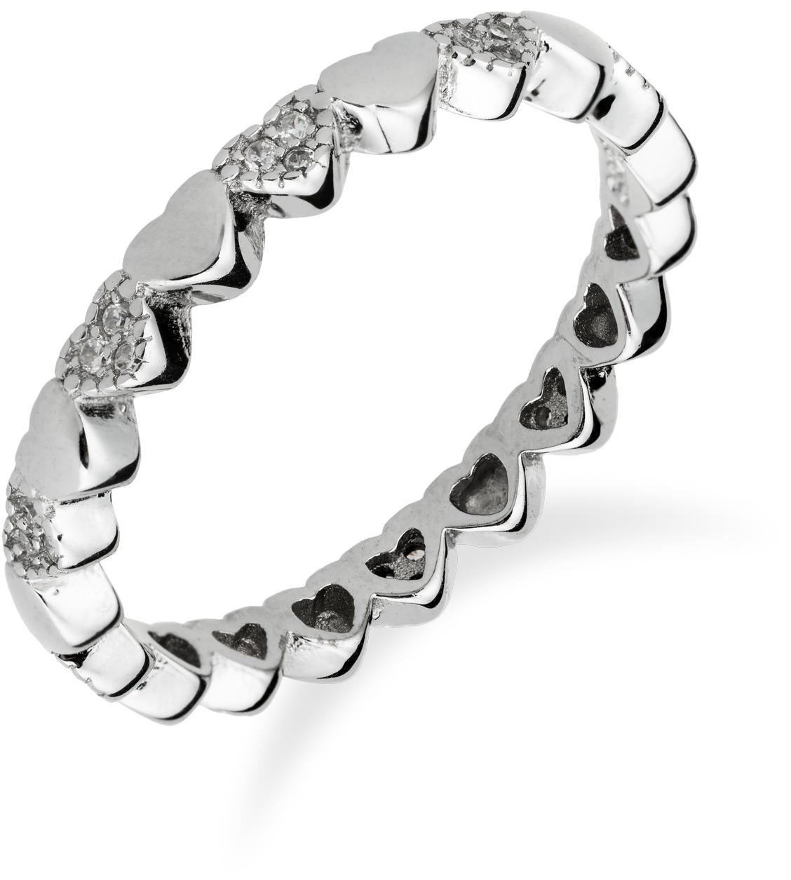 Strieborný prsteň so srdiečkami zdobený zirkonmi SR064 , AG 925/1000: 57