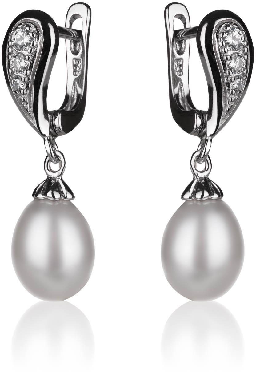 Visiace strieborné náušnice s perlou a zirkónm SP90, AG 925/1000